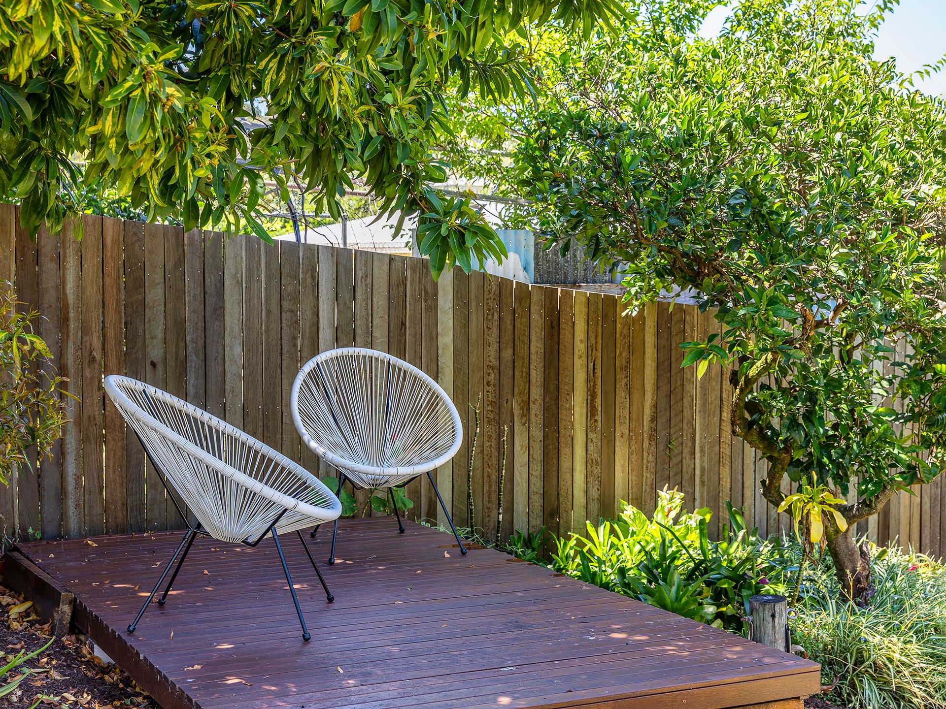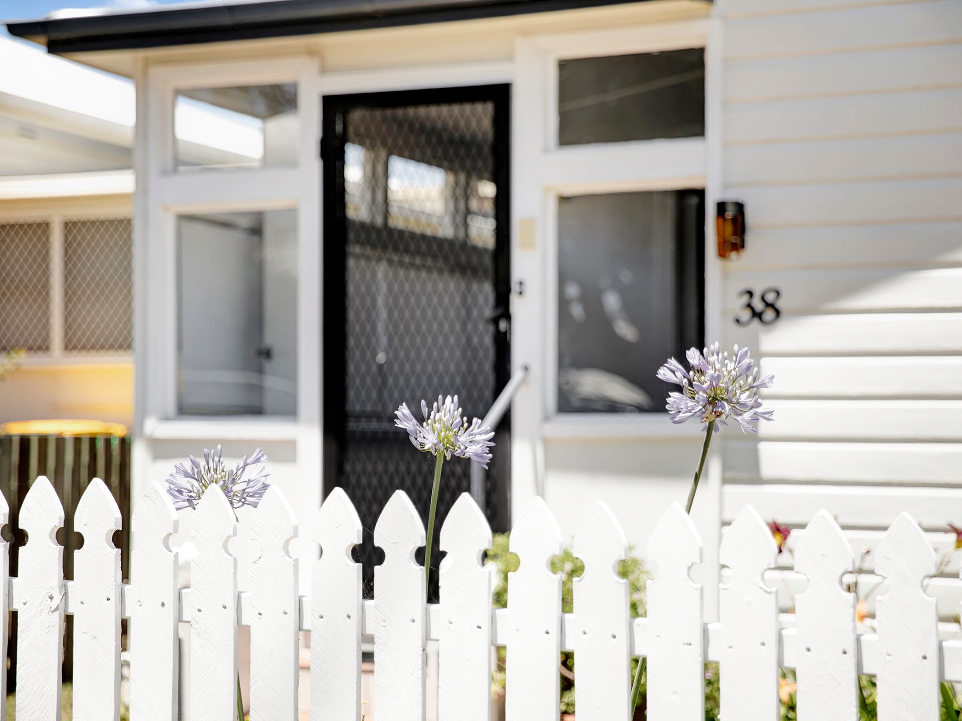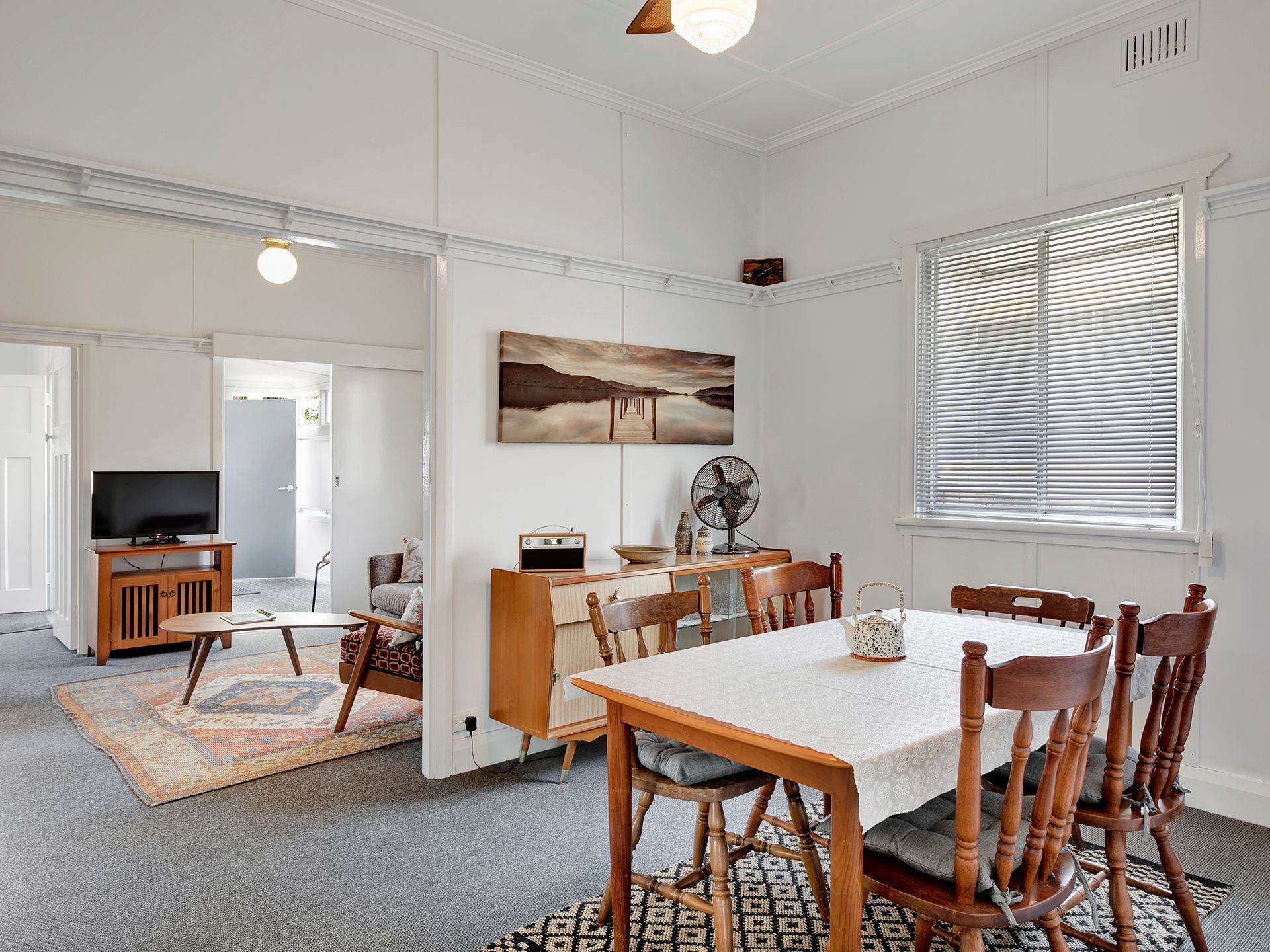 On entry of Dove Cottage a lovely sun-drenched covered verandah awaits to just have a coffee or read a book and enjoy the tree lined wide street scape in the quiet surrounds of Wharf St.