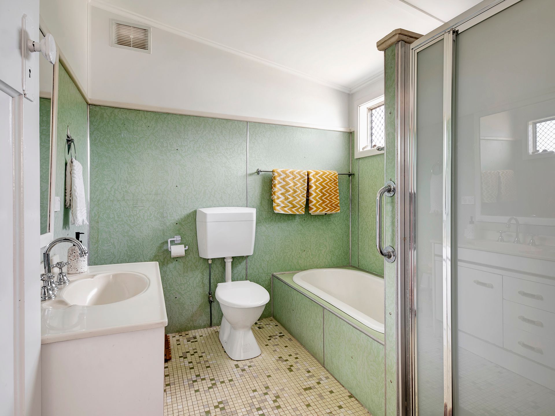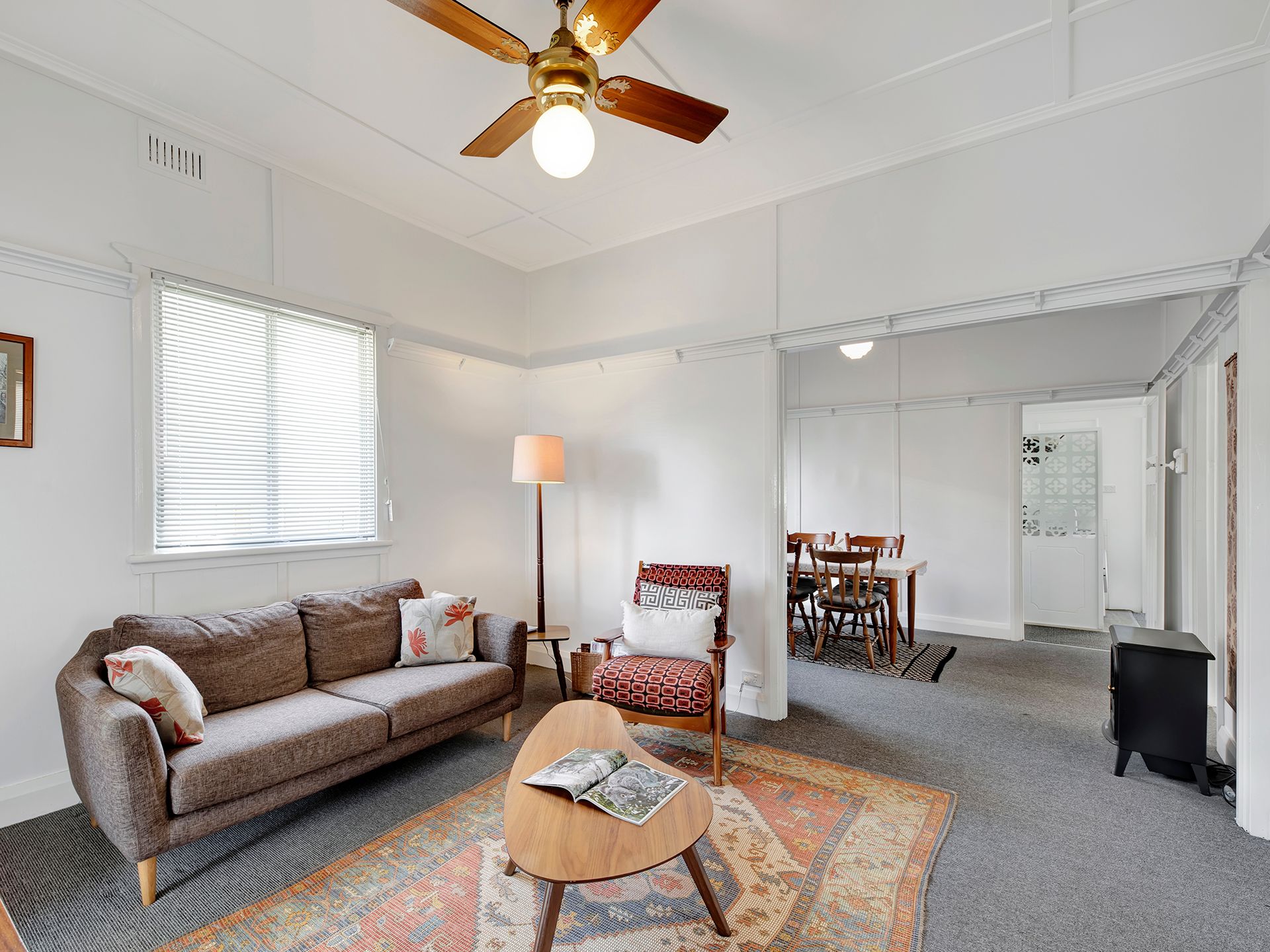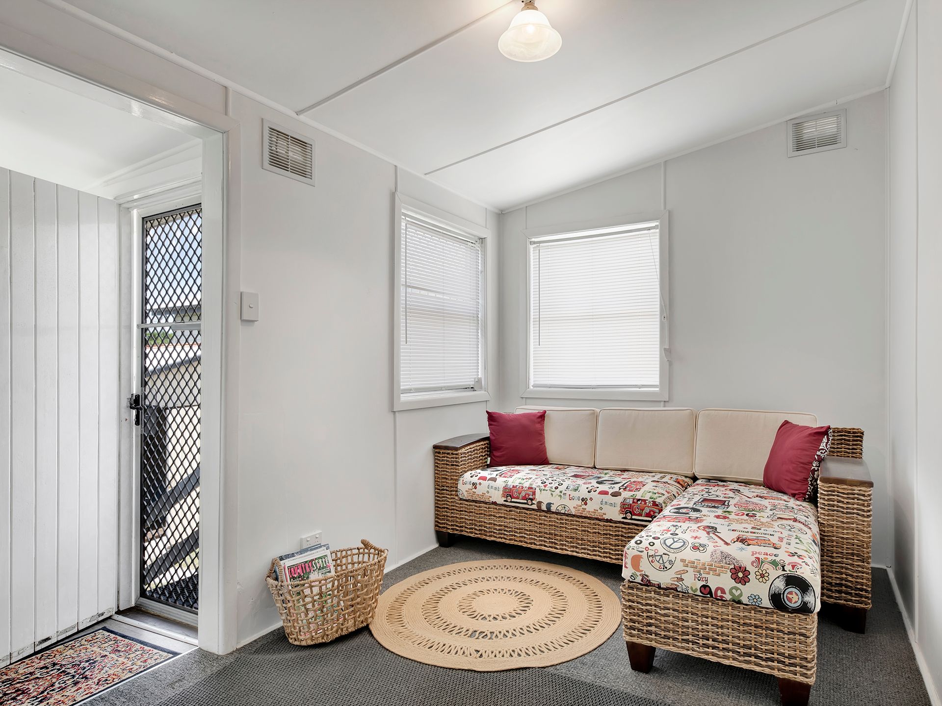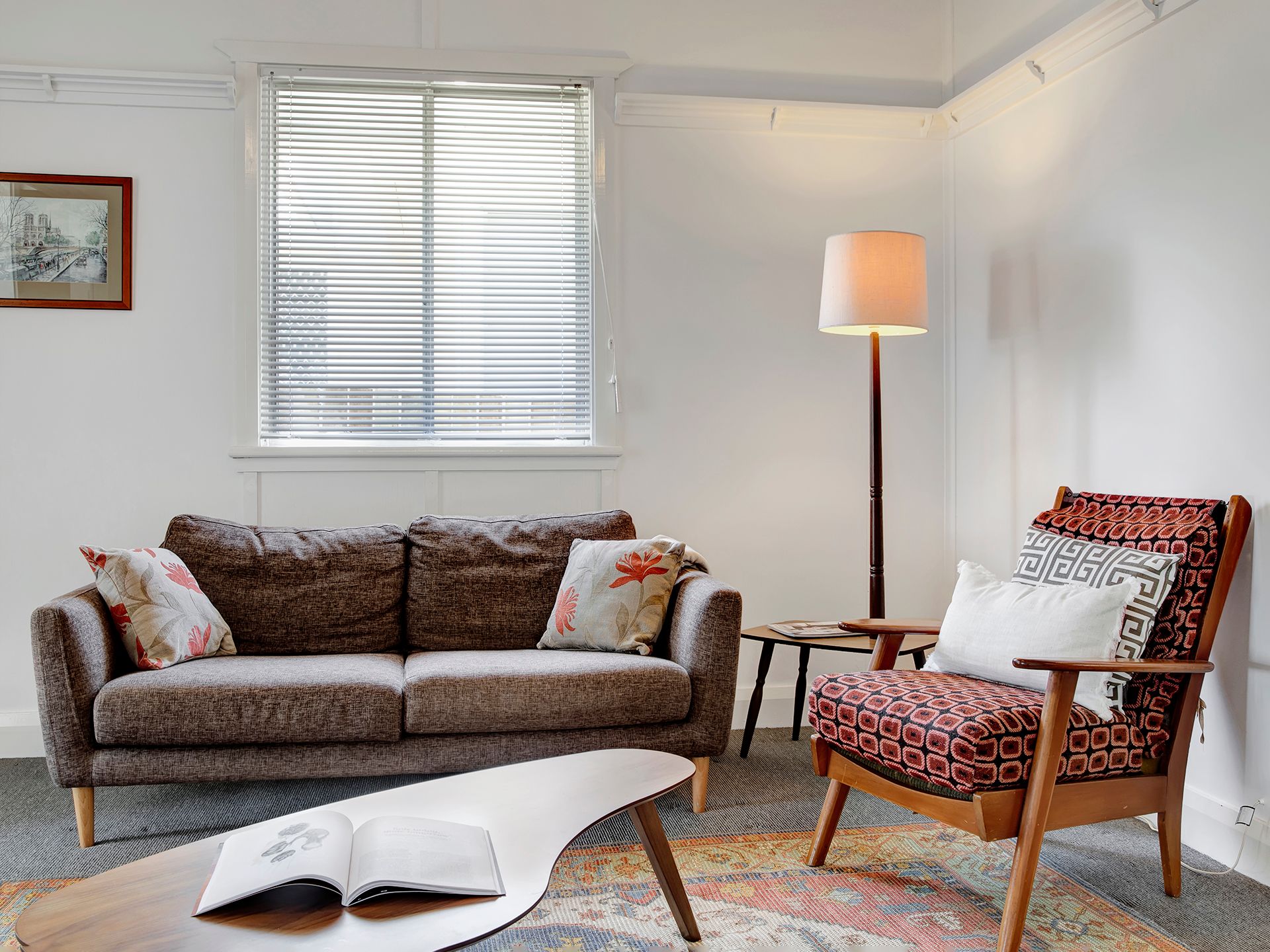 On entry of Dove Cottage a lovely sun-drenched covered verandah awaits to just have a coffee or read a book and enjoy the tree lined wide street scape in the quiet surrounds of Wharf St.