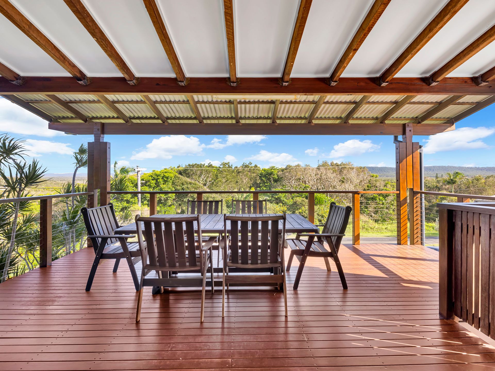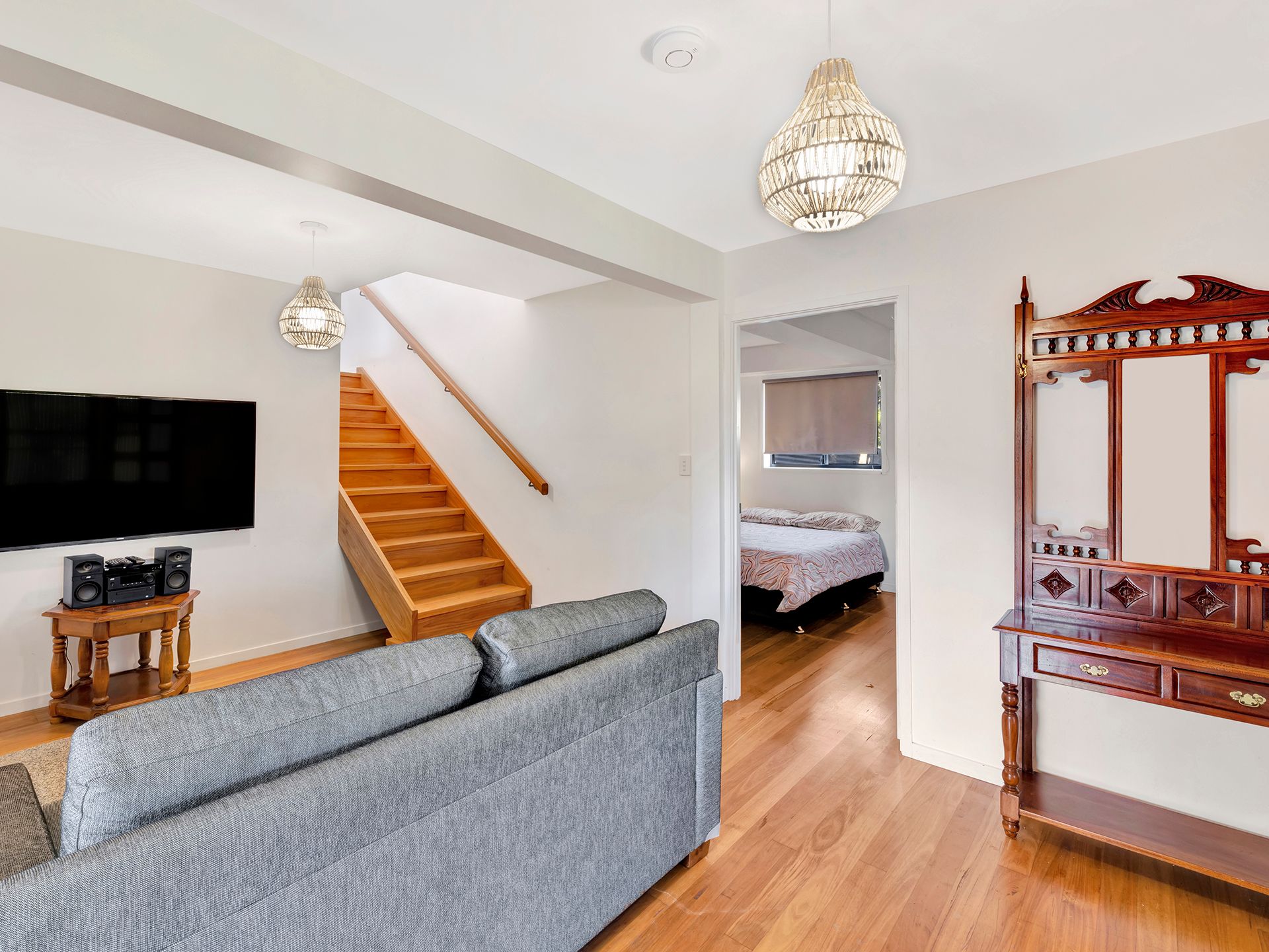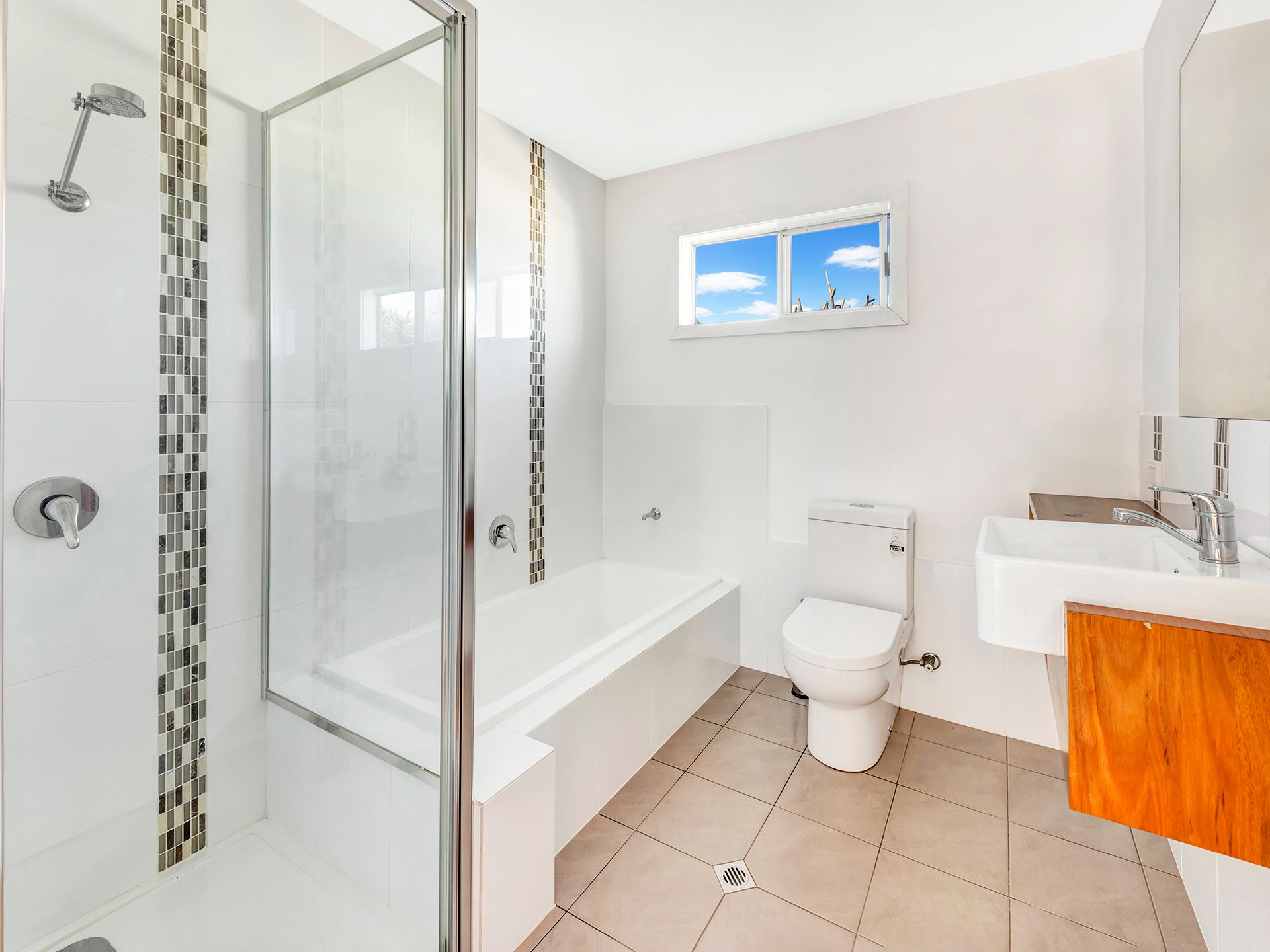 Up the beautiful timber staircase, a large open dining area and kitchen lead to a front deck where you will take in the beautiful bush landscape and ocean breeze.