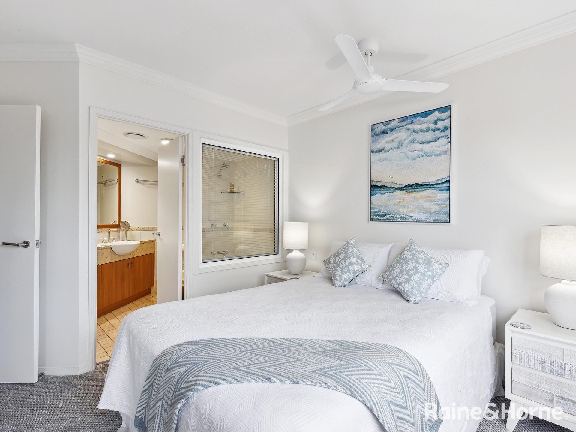 Two modern bathrooms, including a private ensuite off the main bedroom for added convenience.